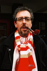 Yo era un niño de cuarenta y muchos tacos. Me sacaron una foto fuera del estadio, que adjunto, diciéndome que era el típico hincha del Liverpool, a la fotógrafa le expliqué que era de Bilbao, y que era mi primera vez allí, se moría de la risa. Al tipo que me ayudó a encontrar mi sitio, le conté la historia de mi cumple y… tooodos los que se sentaron a mi alrededor, supieron que era mi primera vez. No me hice un solo selfie, porque la gente se partía de risa con mi carita y se ofrecían a fotografiarme. Recuerdo a George Sephton recitando la alineación, y que hacía frío.